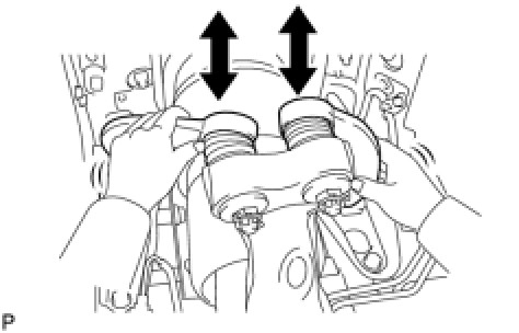 (b) Move the front suspension upper arm up and down by hand, and check for rattle.
