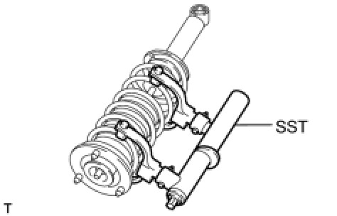 (a) Install SST to the rear coil spring so that the distance between the upper and lower hooks is as wide as possible within the installation area.