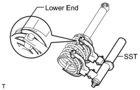Install the coil spring so that the end comes to the stepped portion of the coil spring insulator lower.