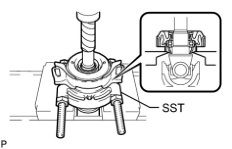(b) Using SST and a press, press out the center support bearing and No. 2 dust deflector.