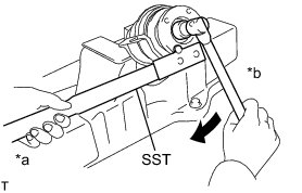 (e) Using SST to hold the universal joint flange, press the No. 1 center support bearing assembly into position by tightening down a new nut.