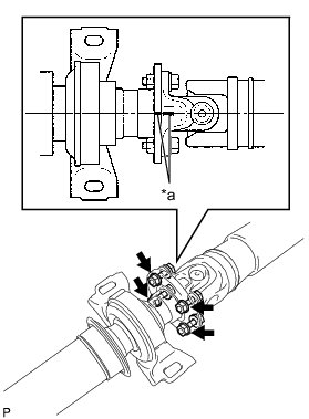 (a) Align the matchmarks on the intermediate shaft assembly flange and the propeller shaft flange, and install the shaft with the 4 bolts, 4 washers and 4 nuts.