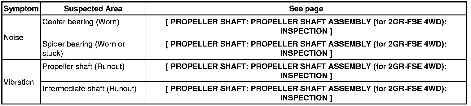 PROPELLER SHAFT: PROPELLER SHAFT SYSTEM: PROBLEM SYMPTOMS TABLE
