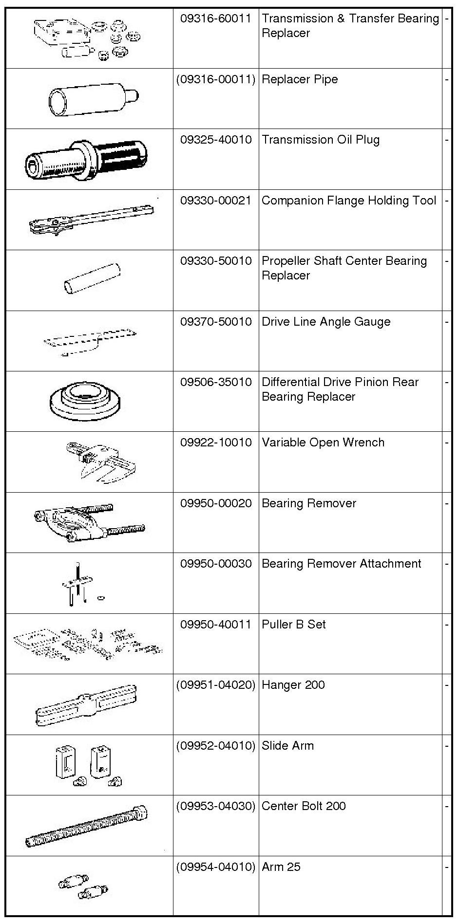 PREPARATION: PROPELLER SHAFT: SST