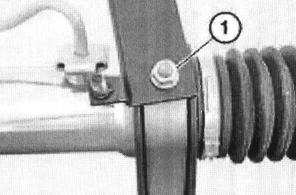 Mark steering tie rod with a dab of paint (1) to act as a guide/starting position when adjusting wheel alignment with the new steering rack.