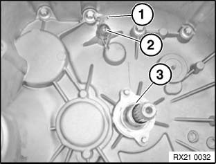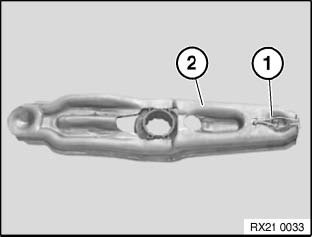 Check spring wire clip (1) and ball pin (2) for damage and replace if necessary.