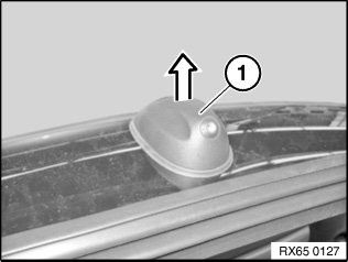 Remove roof aerial (1) in upward direction in direction of arrow.