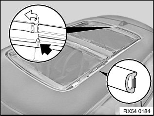 NOTE: Follow repair instructions for bonded seals on panorama glass roof.