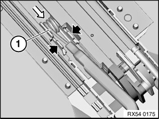 Press retaining lugs and slide spring joint (1) forwards up to recess in rail profile.