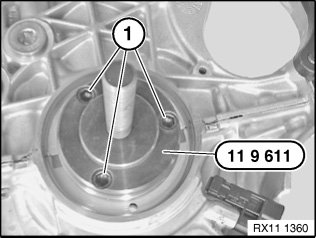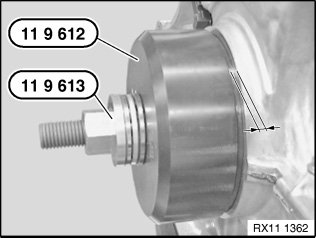 Use the supplied screws (1) to install the special tool 11 9 611 on the crankshaft.