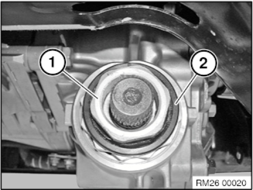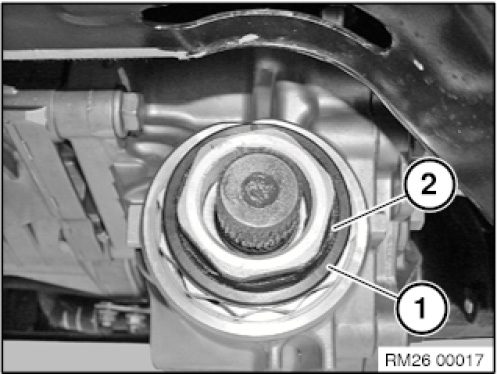 Remove retaining clip (1) and gasket (2).