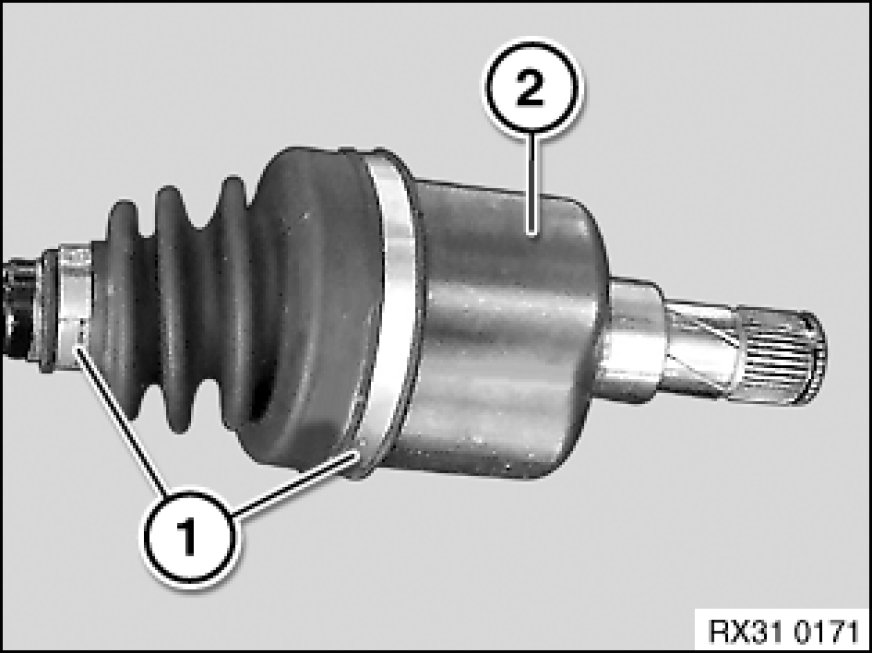 The sealing surfaces (2) inside the gaiter and the groove on the constant-velocity joint must be dry, clean and free from grease.