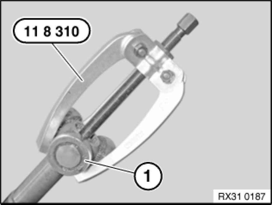 Pull tripod star (1) off output shaft with special tool 11 8 310 and clean carefully.