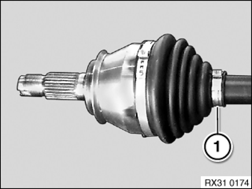Vent gaiter (1); carefully slide a suitable tool between gaiter and output shaft for this purpose.