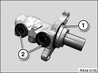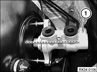 When inserting the brake master cylinder (1) into the brake servo, make sure the pressure rod of the brake servo and the brake master cylinder meet each other on one level.