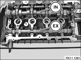 In the case of the exhaust camshaft, the designation (EX) must point upwards.