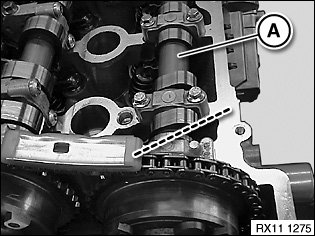Position of exhaust camshaft (A) points at an angle to the right in an upper outward direction