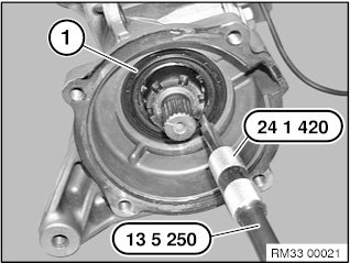 Pull out radial shaft seal (1) with special tools 24 1 420 and 13 5 250.