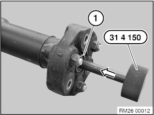 Drive in centring mount (1) with special tools 11 2 030 and 00 5 500 into propeller shaft (observe protrusion).
