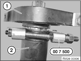 Install special tool 00 7 500 between centre bearing (1) and propeller shaft (2).
