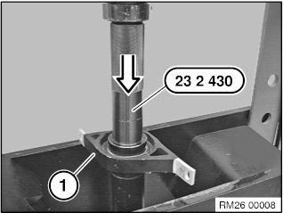 Use special tool 23 2 430 to press on new centre bearing (1).