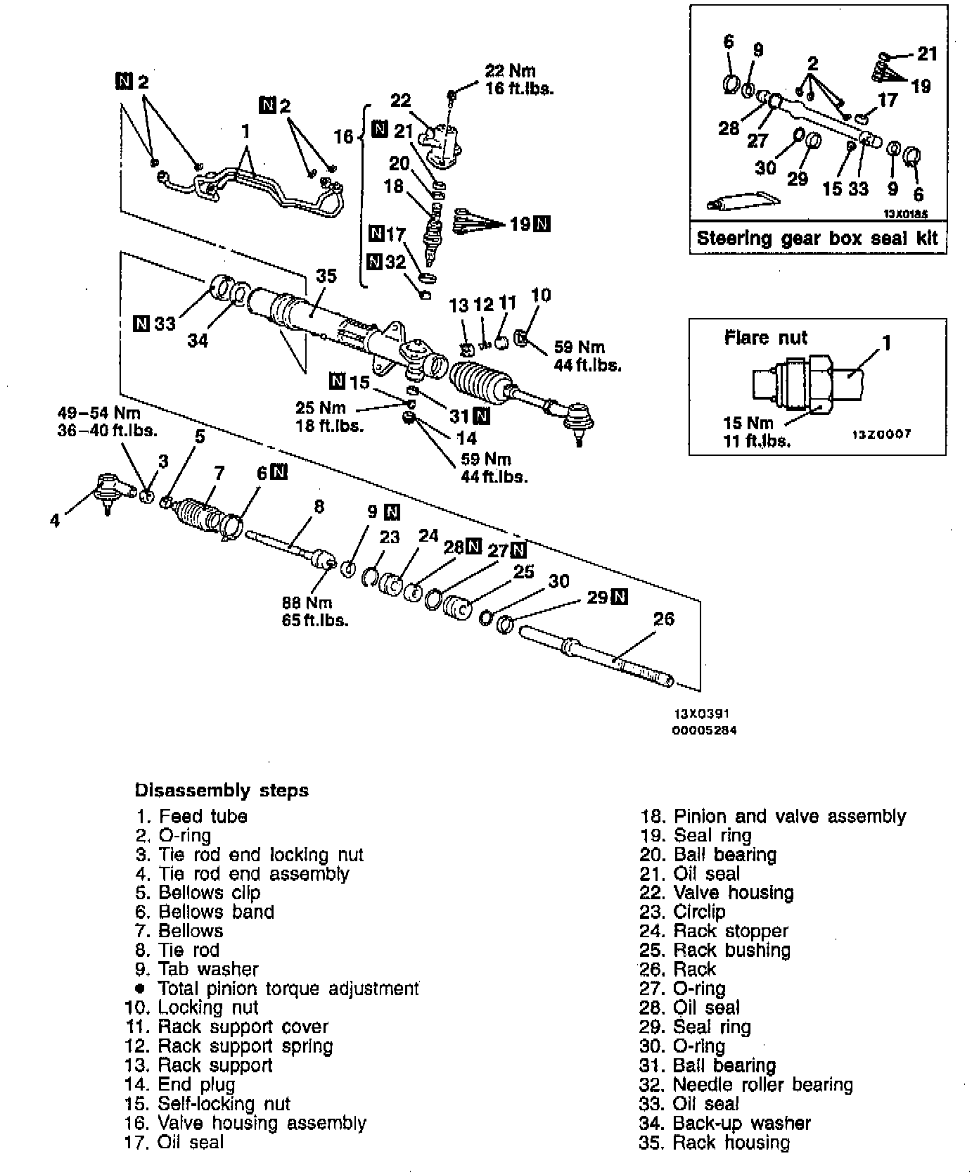 After installing tie rod to rack, fold tab washer end (2 locations) to tie rod notch.