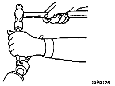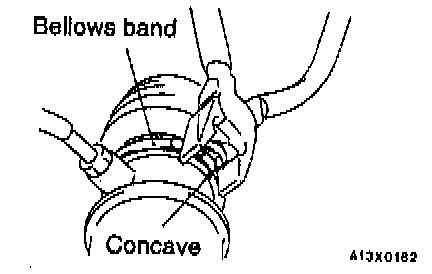 2. Use a plastic hammer or similar to bend the convex section of the bellows band as shown in the illustration.
