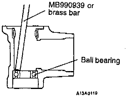 Use a brass bar or special tool to remove the ball bearing from the gear housing.