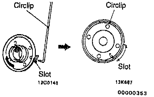 Insert circlip to rack stopper hole through cylinder hole. Turn rack stopper clockwise and insert circlip firmly.