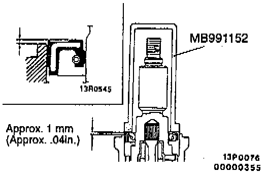 CAUTION: In order to eliminate a seal malfunction at the valve housing alignment surface, the upper surface of the oil seal should project outward approximately 1 mm (.04 in.) from the housing edge surface.