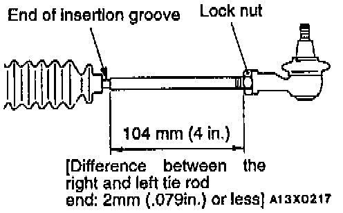 Screw in tie rod end to have the shown dimension. Lock with lock nut.