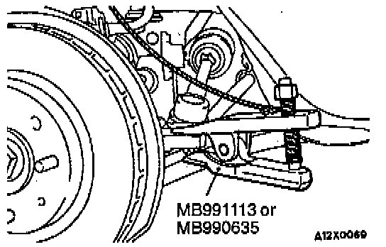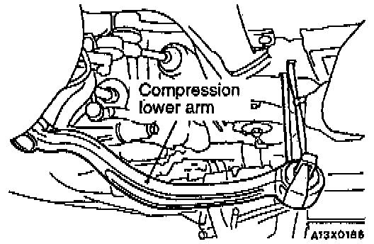 CAUTION: The compression lower arm should be suspended so that undue force is not applied to the ball joint.
