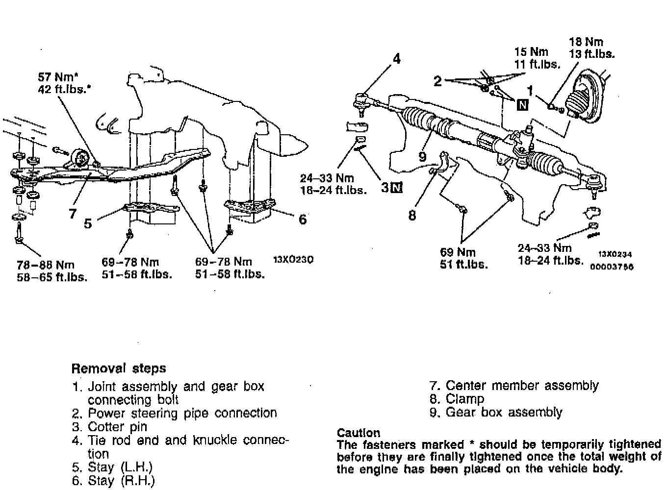 2. Remove the connection between the gear box assembly and joint assembly, and remove the gear box assembly from the crossmember at the left side.