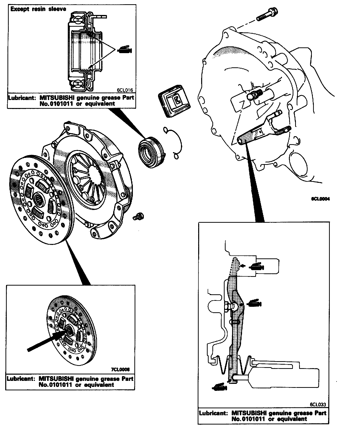 Specified grease: MITSUBISHI genuine grease Part No.0101011 or equivalent.