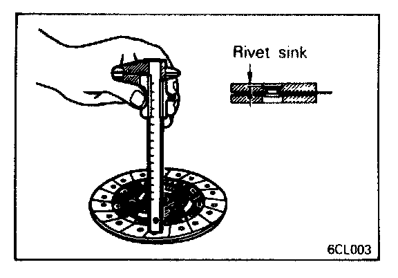 - Measure the rivet sink and replace the clutch disc if it is out of specification.