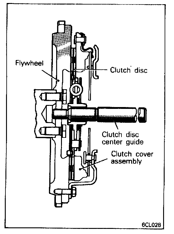 (2) Using the clutch disc center guide position the clutch disc to the flywheel.