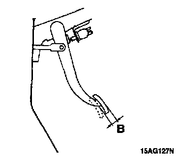 6. Measure the brake pedal height, and ensure that the measured value is within the specified value. When it is out of the specified value, repeat Step (3) - (6).