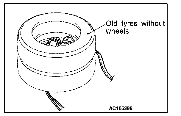 6. Place an old tyre (without a wheel) on the tyre, to which the seat belt with pre-tensioner is secured.