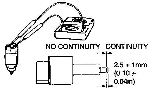 2. There should be no continuity between the terminals when the plunger is pushed in as shown. There should be continuity when it is released.
