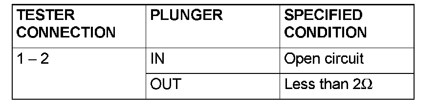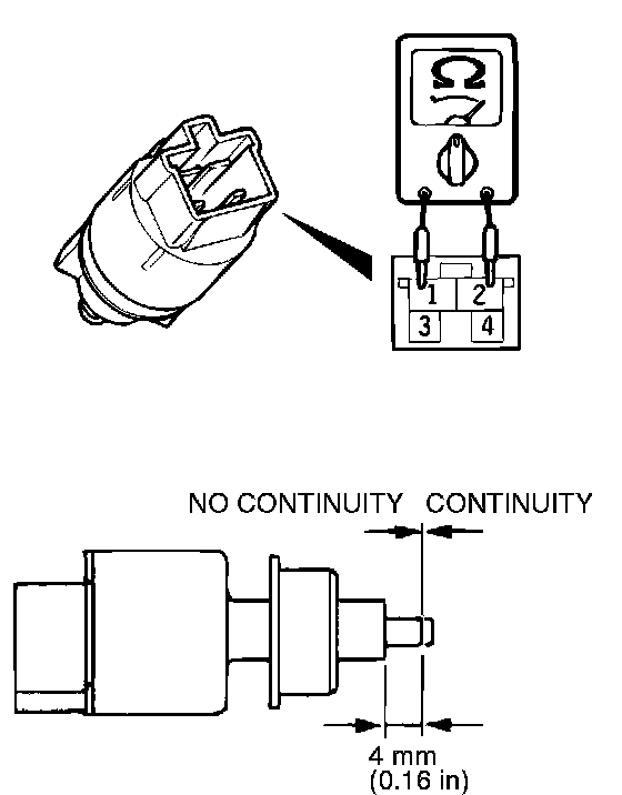 2. There should be no continuity between the terminals when the plunger is pushed in as shown. There should be continuity when it is released.