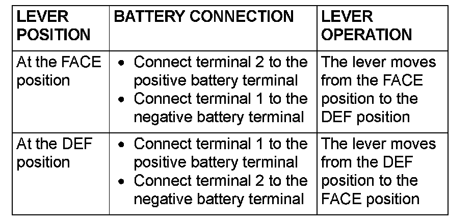 Do not apply battery voltage when the damper is in the FACE or DEF position.