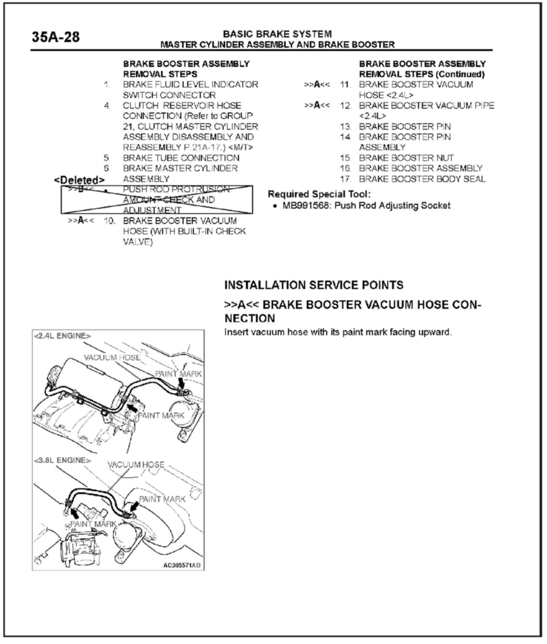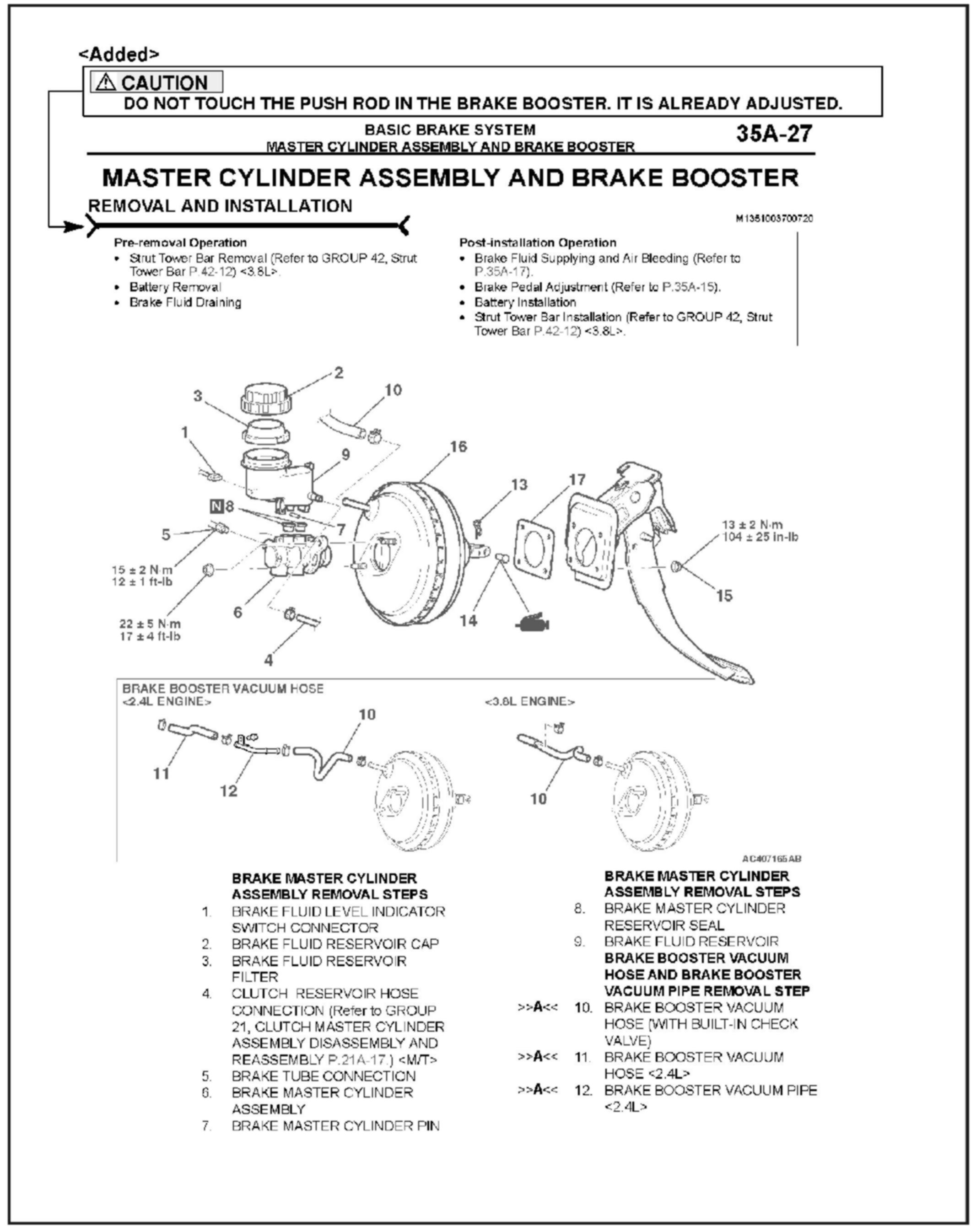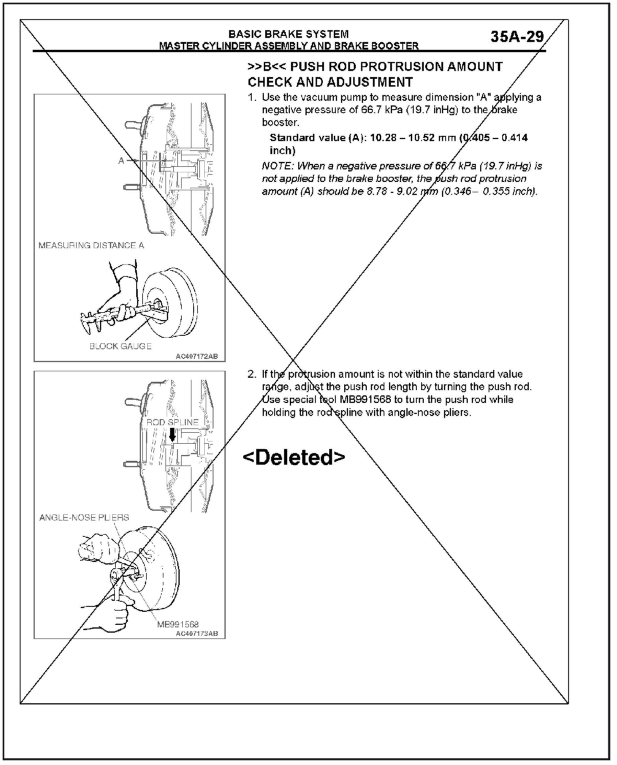 Brake booster service information is incorrect in the 2006 Eclipse service manual. The brake booster push rod is NOT adjustable. This bulletin deletes the brake booster push rod adjustment procedure in the affected service manual.