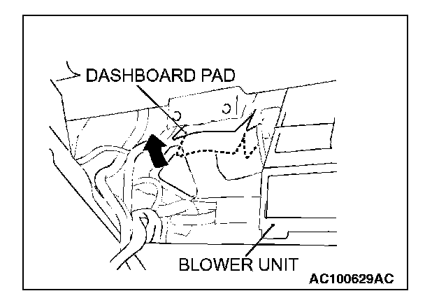 1. When removing the evaporator, cut and fold back the dashboard pad as in the diagram. (The thickness of the pad interferes with the removal of the evaporator.)