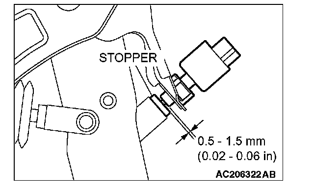 (7) Check that the clearance between the stop light switch and the stopper is as shown.