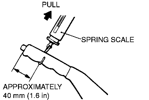 2. Hook a spring scale onto the center of the parking brake lever grip and pull it with a force of 98 - 147 N (22 - 33 pounds) in a direction perpendicular to the handle.