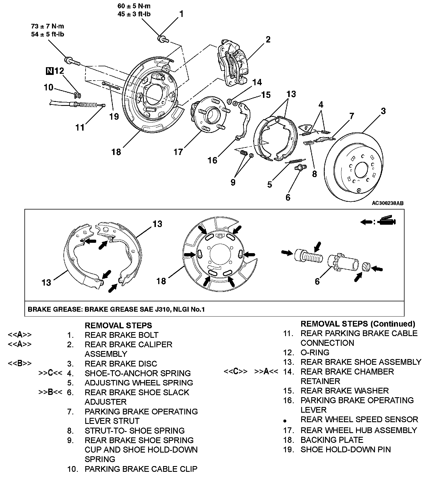 <> REAR BRAKE BOLT/REAR BRAKE CALIPER ASSEMBLY REMOVAL