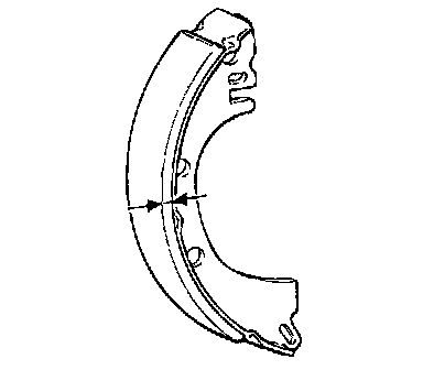 2. If the thickness of the brake lining is below the limit, replace the shoe assemblies on both sides of the vehicle. Never replace only one side.