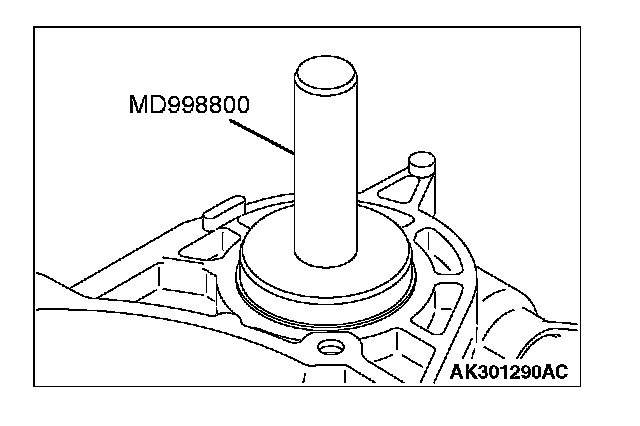 Use special tool MD998800 to tap the oil seal into the torque converter housing.