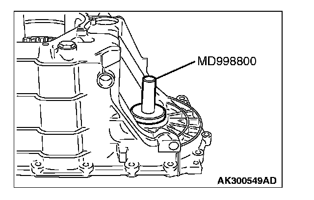 Use special tool MD998800 to tap the oil seal in the transaxle case.