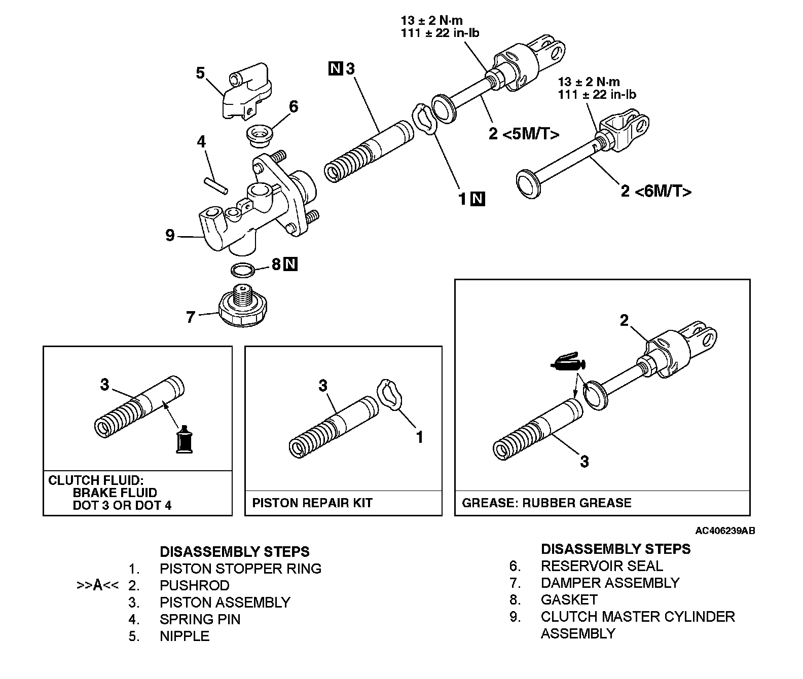 CLUTCH MASTER CYLINDER DISASSEMBLY AND ASSEMBLYCAUTION